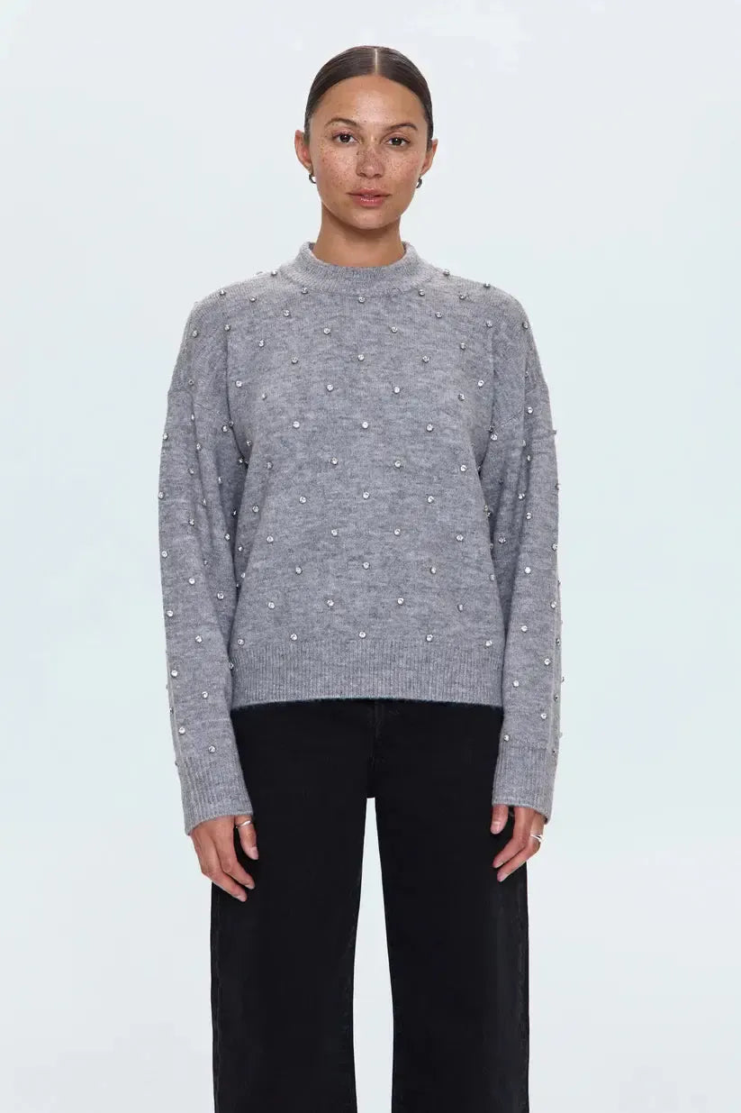 Elevate your everyday wardrobe with the Aura Sweater, where understated elegance meets comfort. This charcoal knit features delicate crystal accents that catch the light beautifully, adding just the right touch of sophistication without overwhelming your look. The relaxed silhouette and fluid drape make it incredibly versatile—pair it with your favorite jeans, tailored trousers, or layer it over a crisp shirt for effortless style. Soft, breathable, and designed to move with you, this is the sweater you'll reach for again and again.