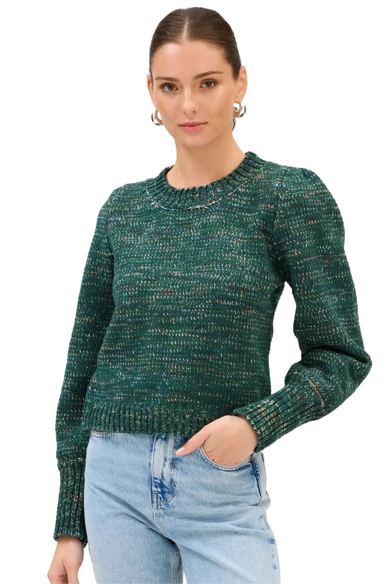 • The Charlotte Sweater has earned its place as our most coveted knit, and this new green spacedye iteration showcases why. Expertly crafted from a rich blend of chenille and spacedye yarns, this piece offers substantial weight and refined texture. The design balances a sleek, fitted torso with dramatically voluminous sleeves that taper at the wrist, creating an elegant silhouette that transcends seasons. A wardrobe essential that rewards repeated wear and pairs effortlessly with any palette.