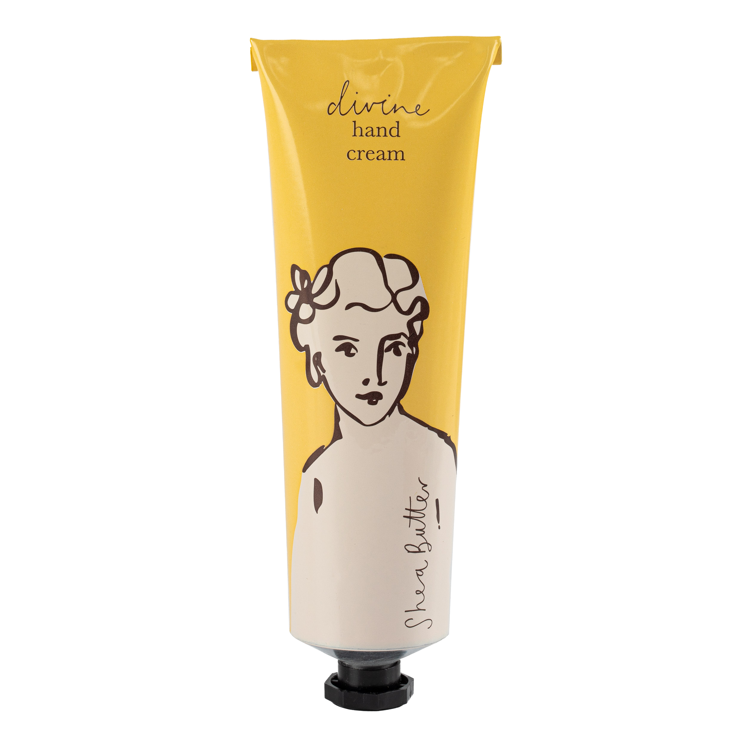 Our shea butter-scented hand cream is in a yellow tube featuring the divine lady by Wanderlust, packaged in a matching yellow box with gold foil writing. Your new handbag essential is here! Made in France, our hand creams are the best luxurious treat for your skin because even your hands deserve love. While they are the perfect consistency to soak into your hands effortlessly, they also look divine sitting on your bathroom shelf or as a little self-care desk decor.