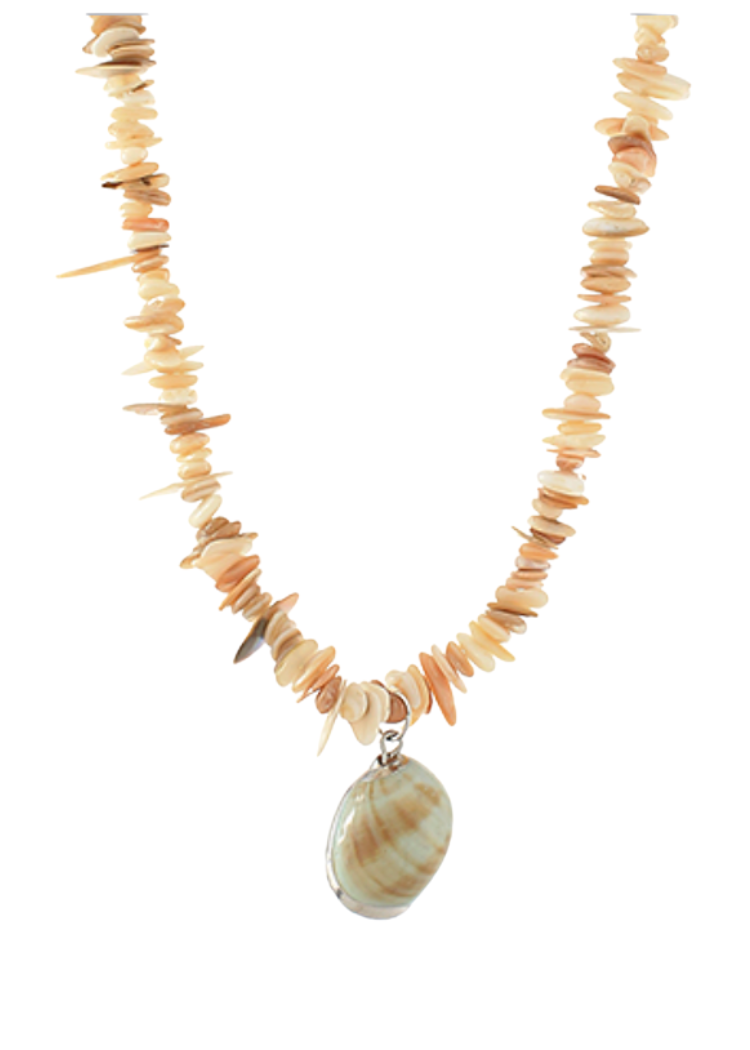 Sunlee Beaded Necklace with Shell Pendant - Turquoise-Hand In Pocket