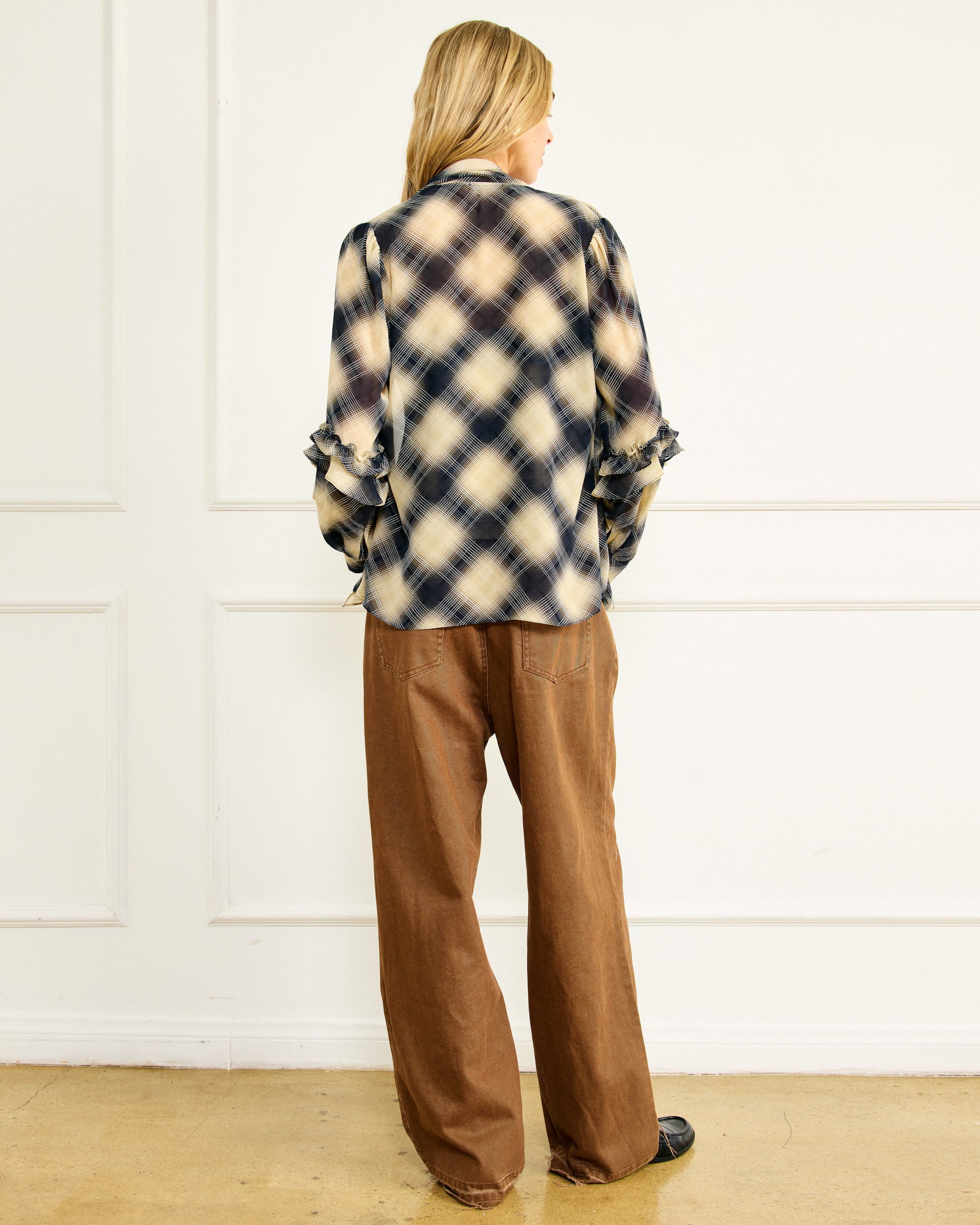 Delicate chiffon is enriched with flowing ruffles and subtle ties, creating a refined blouse ideal for transitioning effortlessly from workdays to evening outings.