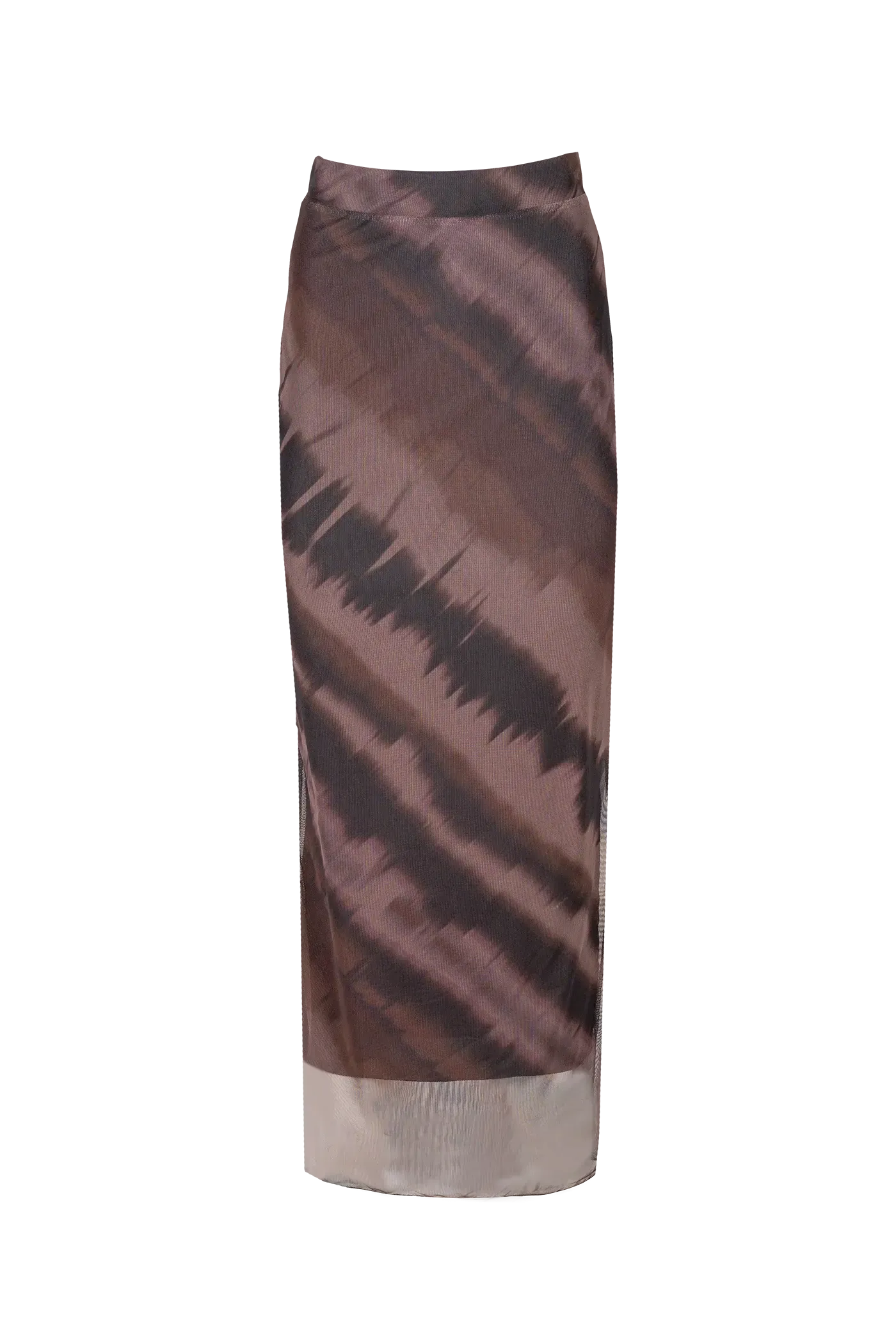 Featuring a printed midi design, this skirt pairs a sheer outer layer with a smooth lining, crafted from a stretchy polyester-spandex blend for comfortable, stylish wear.