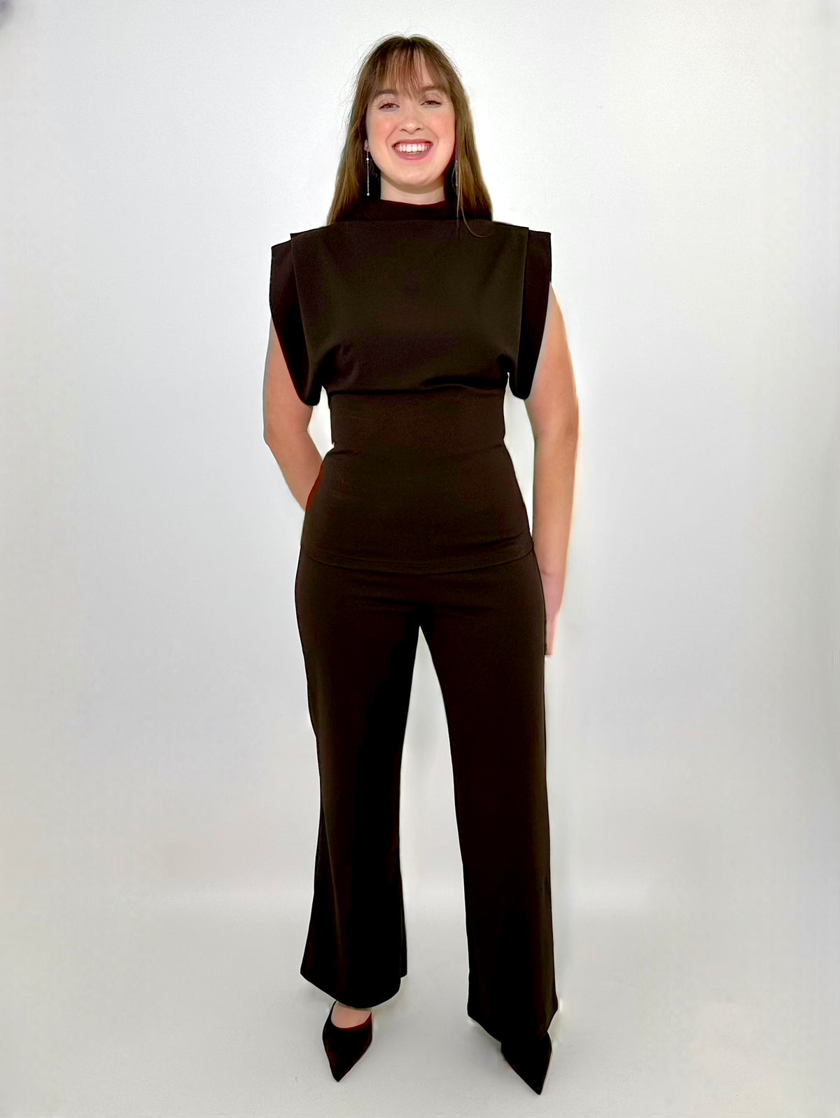 Michael Stars Lara Ribbed Mock Neck Top - Espresso-Hand In Pocket