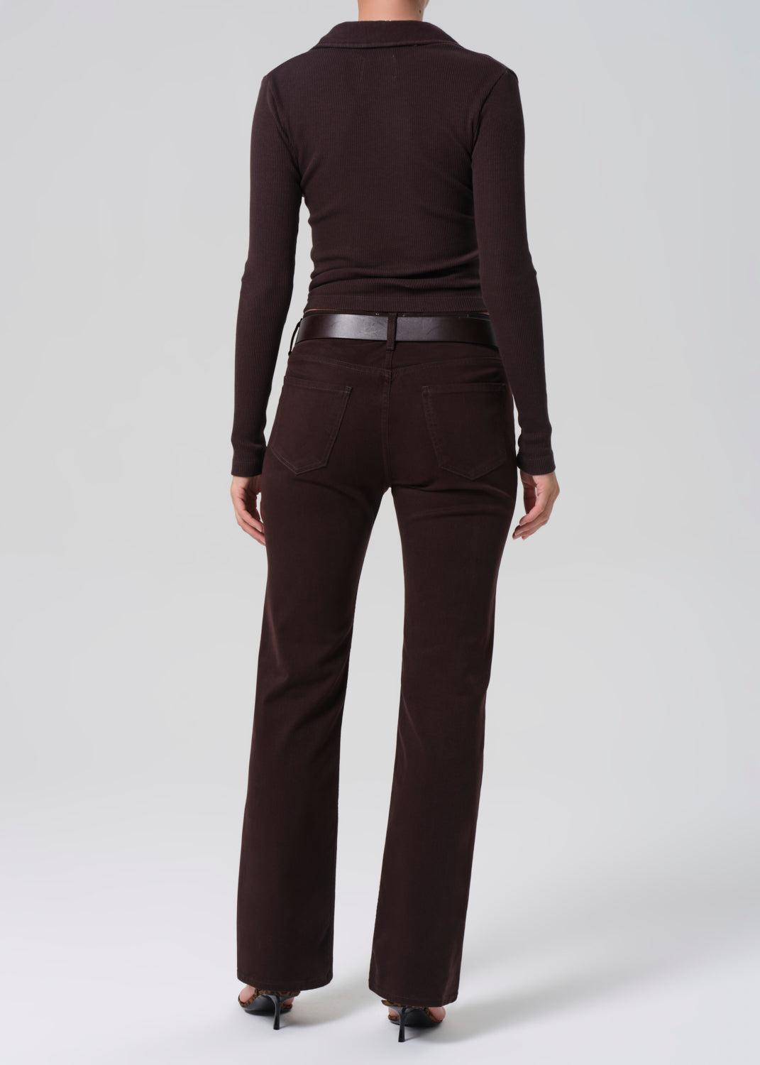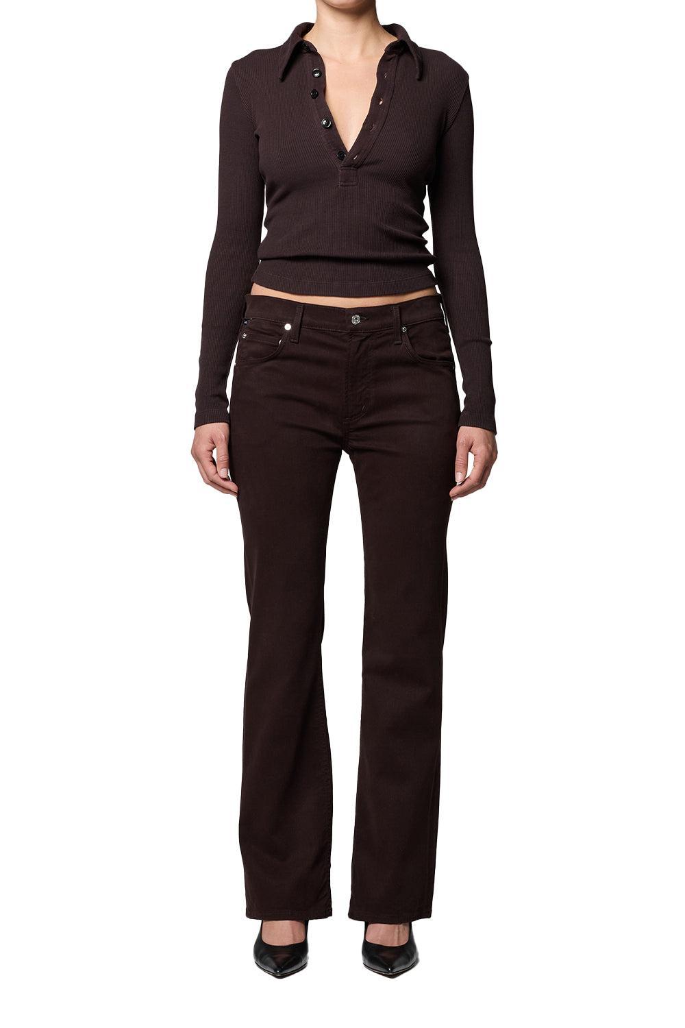 A low-rise bootcut pant crafted from signature cashmere-blend denim for a super-soft hand. The silhouette fits true to size and falls to a full-length bootcut, offering a clean, refined denim that works for both everyday and dressed-up looks.